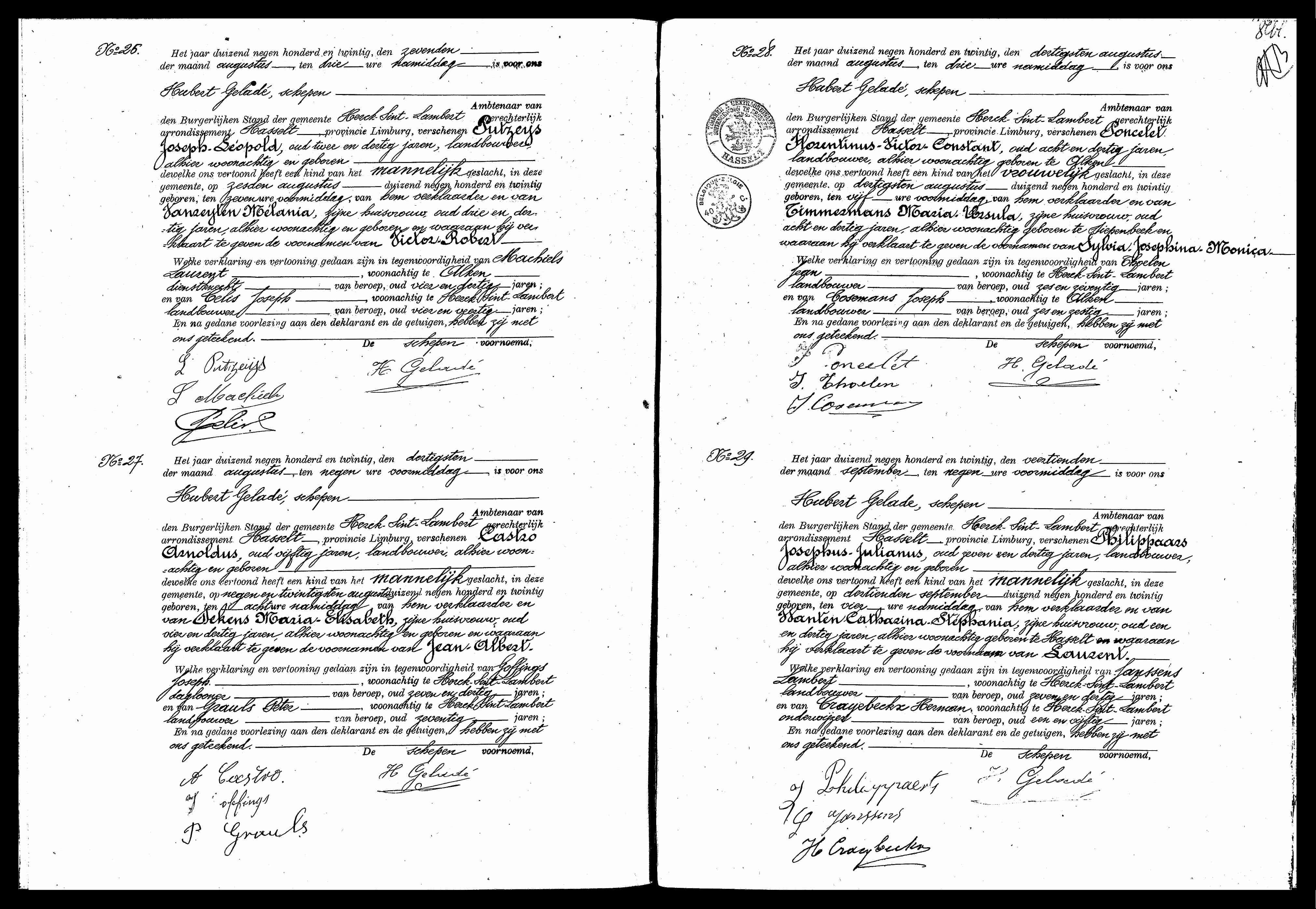 - [S502] Verkoopsakte tussen Thys Martinus Lodewijk, Uytterhoeven Anna Maria Elisabeth, Uytterhoeven Julienne Maria Coleta, Uytterhoeven Agnes Maria Coleta, Uytterhoeven Angèle Louisa Yvonne Antonia en Uytterhoeven Edgard Ferdinand enerzijds, en Thys Jozef Louis Cornelis en Baelus Maria Virginia Josepha anderzijds, van landbouwgrond.
